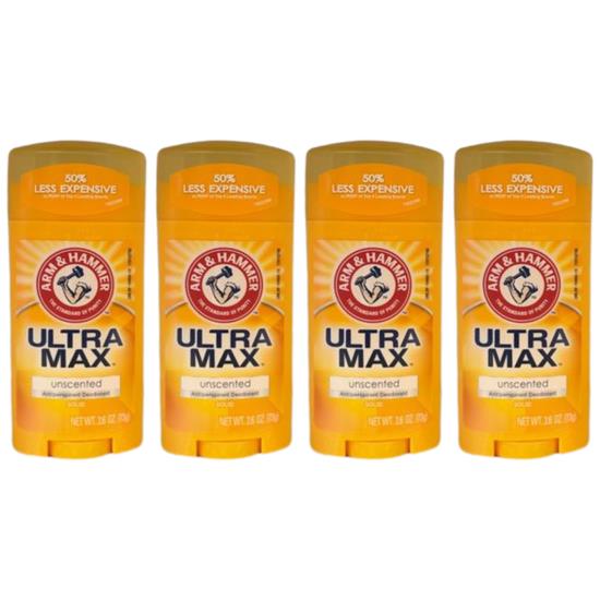 4-Pack New Arm & Hammer Ultramax, Unscented Antiperspirant Deodorant, Invisible Solid, 2.6 fl oz