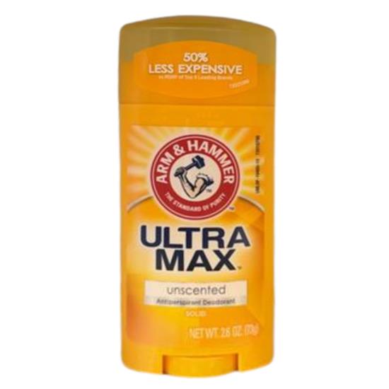 - Arm & Hammer Ultramax Antiperspirant Deodorant wide Stick Invisible Solid reduces underarm perspiration. The power of Baking Soda to absorb & eliminate odors, naturally. Patented time-release formula delivers bursts of deodorant power hour after hour. Powerful wetness protection, too with no white residue!