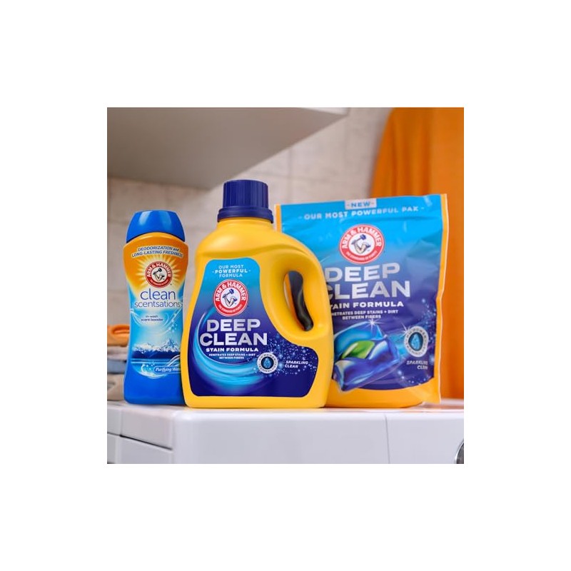 Everyday dirt and stink linger deeper than you think! Now clean deeper(1) with ARM & HAMMER Deep Clean Stain Formula Sparkling CleanLaundry Detergent Power Paks. Our most powerful stain remover Power Pak by ARM & HAMMER yet, this concentrated laundry detergent features pH Power Technology with millions of ionic micro-scrubbers that attack dirt deep between fibers. Plus, these HE compatible concentrated laundry detergent Power Paks infuse a sparkling clean scent into every wash. Drop in two Power Paks for heavily soiled loads, and one Power Pak for lightly soiled loads. ARM & HAMMER Deep Clean Stain Formula Power Paks comes in a 44 ct pouch, enough for up to 44 medium loads of laundry when used as directed. (1) vs. ARM & HAMMER Plus OxiClean Power Paks.