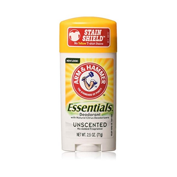 ARM & HAMMERTM Baking Soda and natural plant extracts to absorb and fight odor. EssentialsTM Deodorant does not contain aluminum, parabens, colorants or animal-derived ingredients. Natural plant extracts from chamomile, coriander and geranium fight and protect odor naturally