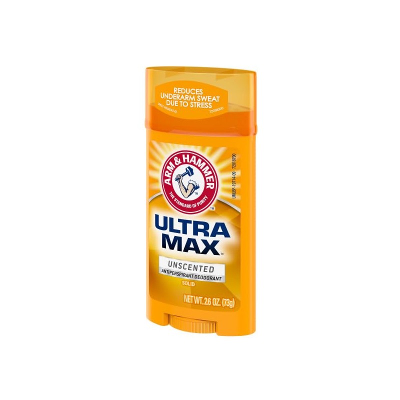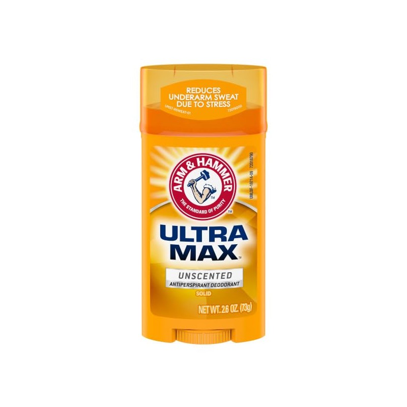 ARM & HAMMER ULTRA MAX decreases underarm wetness and reduces underarm sweating due to stress. With the natural power of baking soda, we help you feel and smell your best. With ULTRA MAX you can fight odor and confidently go about your day. Sweat and odor can be a problem for men and women, but with ARM & HAMMER ULTRA MAX you can stay ULTRA fresh!