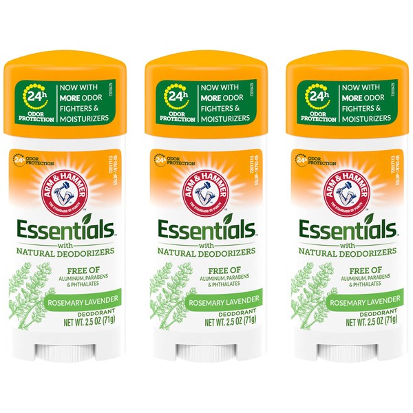 Arm & Hammer Essentials Deodorant Rosemary Lavender .oz Pack of - If you lead an active lifestyle, you need a deodorant that can keep up. Fight odor with the combined power of ARM & HAMMER Baking Soda and natural plant extracts. No matter what your day brings, the refreshing scents and light plant-based fragrances will keep you smelling cool. Plus, you'll have total coverage where you need it to feel confident anytime, anywhere. No aluminum, phthalates, parabens, or colors means you can feel good using this deodorant all the time. And with -hour protection, you know you dont have to worry about odors so you can go about your day.