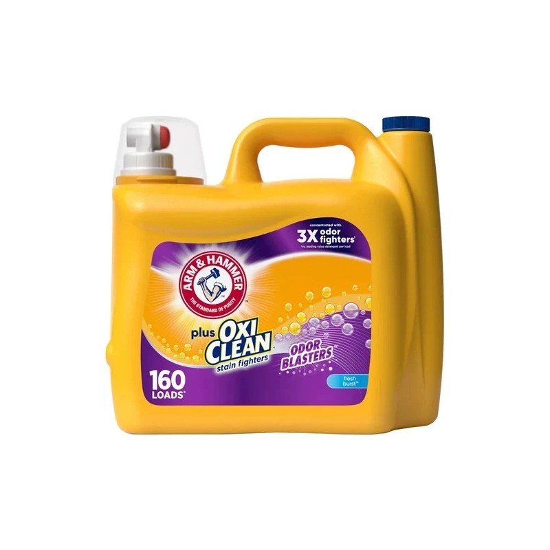 • One 208 fl oz bottle of ARM & HAMMER Plus OxiClean with Odor Blasters Laundry Detergent, Fresh Burst Liquid Laundry Detergent cleans 160 medium loads when used as directed