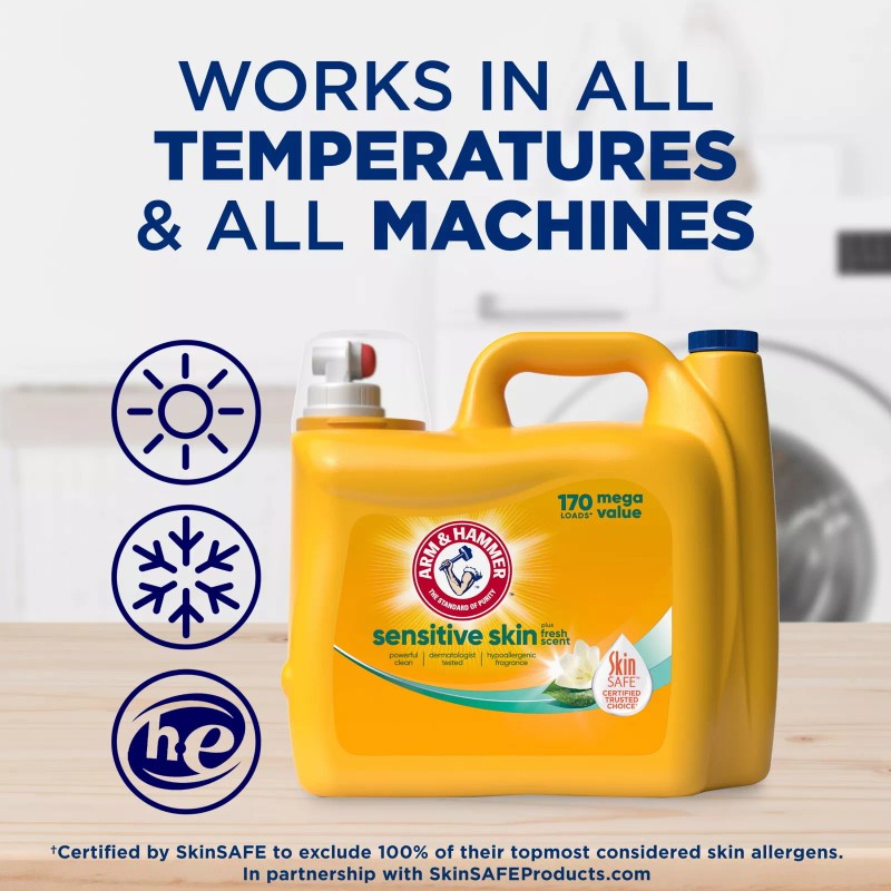 ARM & HAMMER Sensitive Skin Plus Fresh Scent, 170 Loads Liquid Laundry Detergent
