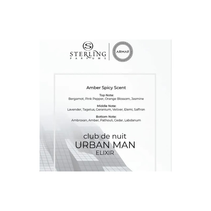 ¡Embárcate en la aventura urbana con Armaf Club De Nuit Urban Elixir Hombre Eau de Parfum 105ml Spray! 🏙️✨ Esta fragancia, lanzada en 2022, es una oda a la masculinidad moderna y audaz, diseñada para el hombre que no teme destacar. 💪🔥