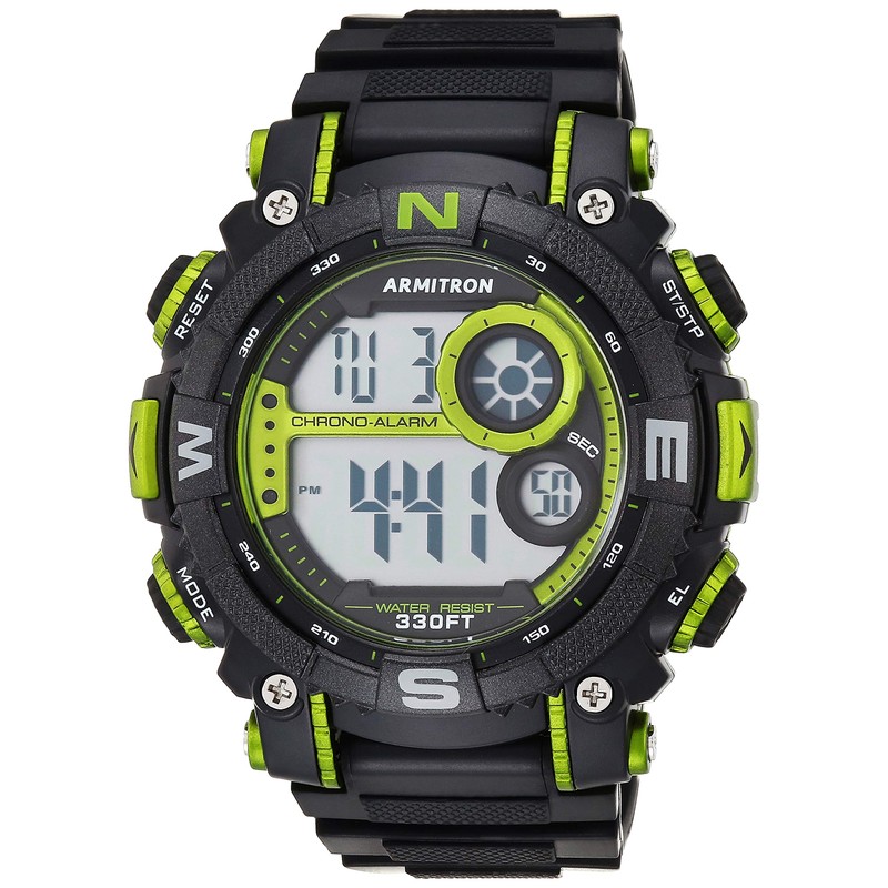 Armitron Sport Men's 40/8284LGN Lime Green Accented Digital Chronograph Black Resin Strap Watch
