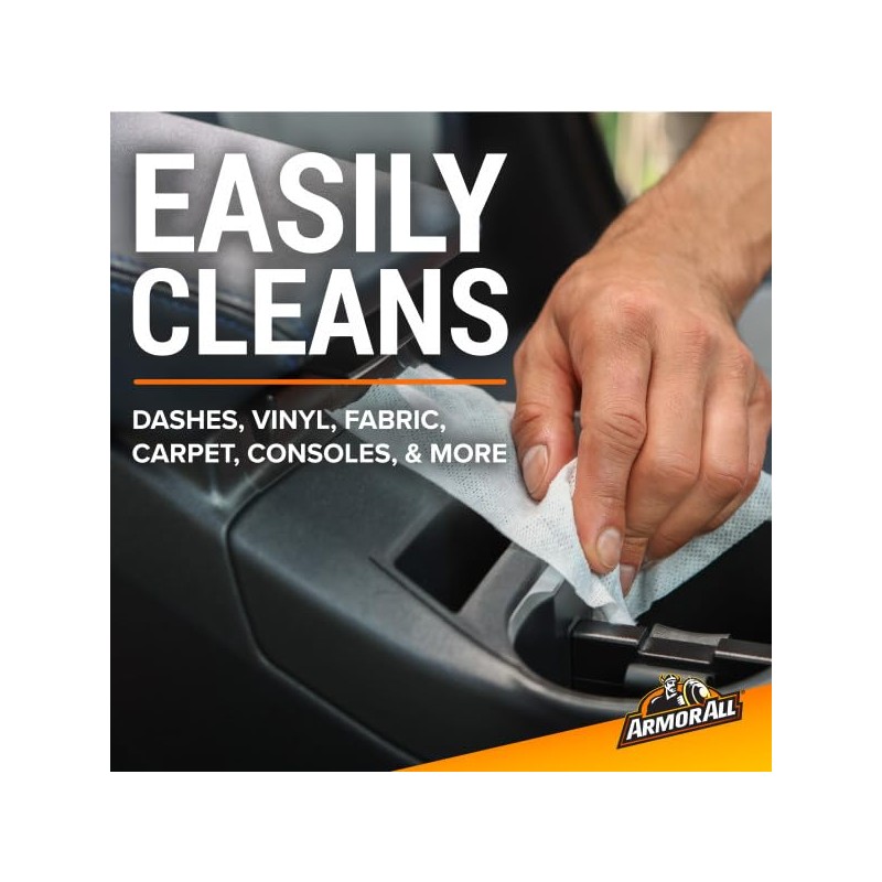 • Multisurface car wipes ideal for dashes, vinyl, consoles, rubber floor mats, and plastics