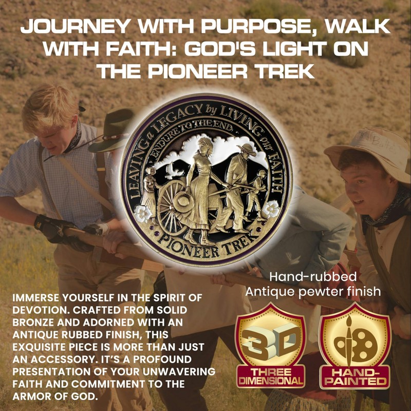- Journey with Purpose - The Pioneer Handcart Trek Collectible, more than just a religious coin, is your companion in faith on every trek. It represents a purpose-driven journey, guided by the armor of God, making it an essential keepsake for those who walk with faith and determination.
