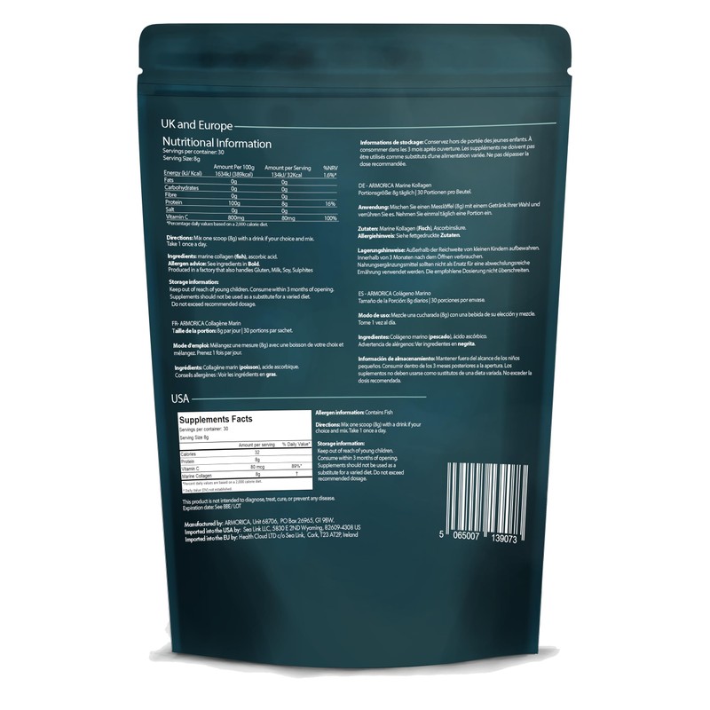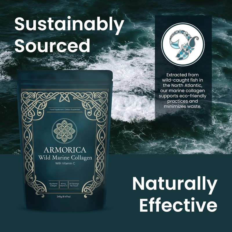ARMORICA Wild Marine Collagen Powder with Vitamin C | Sustainably Sourced from North Atlantic Fish | High Absorption & Optimal Dosage | Ideal for Skin & Joint Health | 30 Servings, Unflavoured (240g)