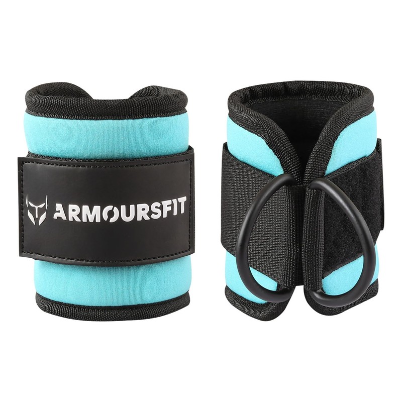 Armours Fit Ankle Straps For Cable Machine Women - Kickbacks, Glute Workouts, Lower Body Exercises - Adjustable Leg Straps with Neoprene Padding (Cyan)