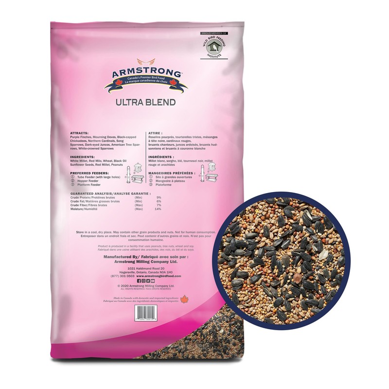 Armstrong Wild Bird Food Ultra Blend, 33 Pounds - with White Millet, Red Milo, Wheat, Black Oil Sunflower, Red Millet & Peanuts for Purple Finches and Black-Capped Chickadees for Outside Feeders