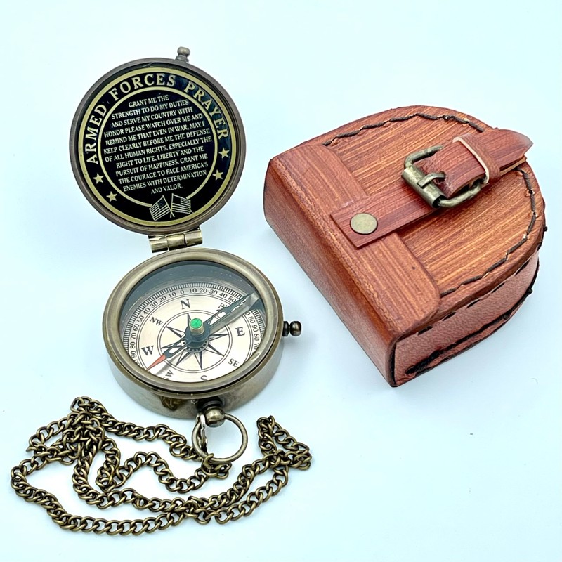 - Brass Compass with chain and leather Case Each compass is individually crafted and carefully packaged in a durable gift box to arrive safely.