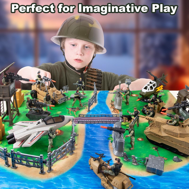 - 【Boosts Imagination & Creativity】Transform playtime into an educational experience! Kids can build military bases, stage missions, and create captivating stories using soldiers, vehicles, and equipment. This playset enhances cognitive development, hand-eye coordination, and motor skills while providing a creative way for children to express themselves through imaginative play