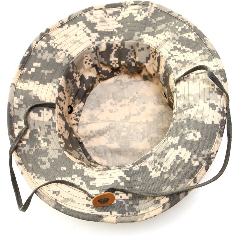 ACU Digital Camouflage Military Wide Brim Jungle Bucket Fishing Camping Boonie Hat with Chin Strap - Our boonie hats, also known as bucket hats, sun hats, fishing hats or jungle hats, are the perfect answer to beating the heat this summer. Great for everything from gardening to golfing! You can even look fly while fly fishing! Our boonie hats are made from a comfortable poly/cotton blend fabric. They are designed with ventilation holes to reduce the build up of heat while the soft, flexible 2.5 inch wide brim blocks out the sun. An adjustable chin strap ensures that you will never loose your boonie while hiking, camping or boating. The soft material can be rolled up for the to provide handy, collapsible, packable, portable shade anywhere you go. We offer a wide range of colors and patterns to match your style.