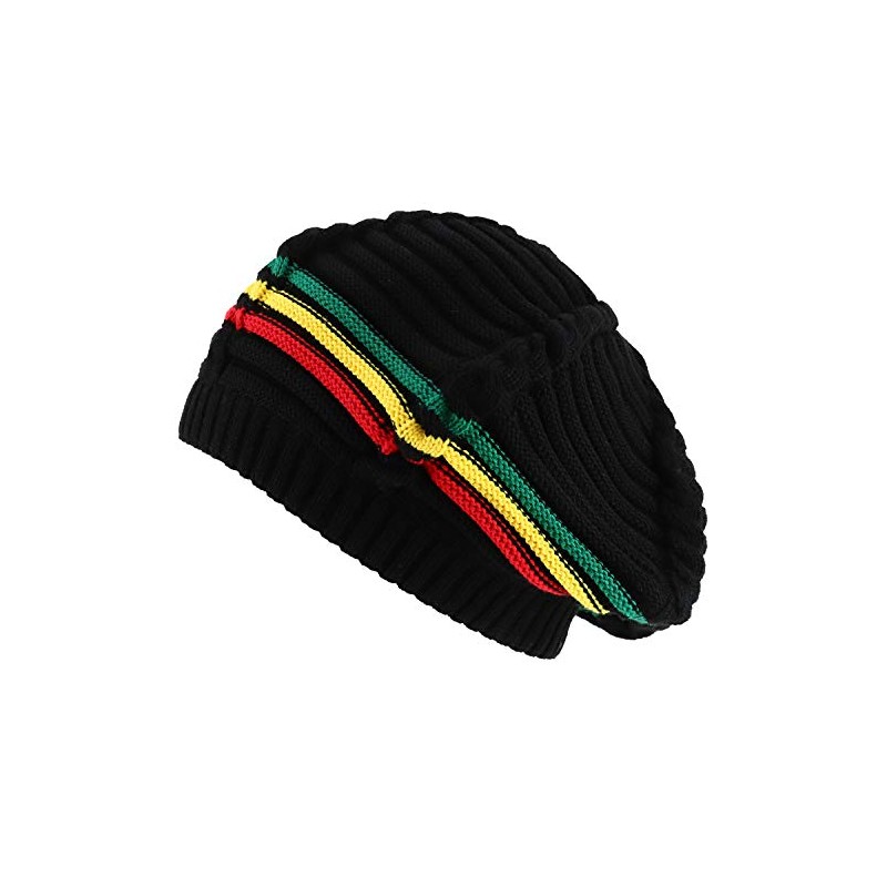 Armycrew Dreadlock Deep Shell 100% Cotton Jamaica RGY Rasta Slouch Beanie Hat - Black Rasta