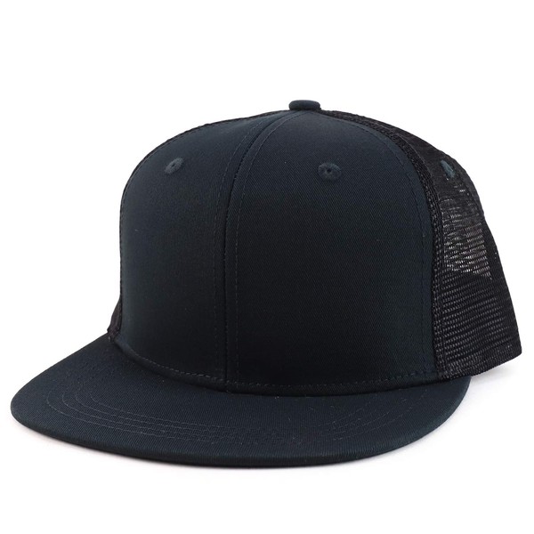 Armycrew Infant to Youth Plain Structured Mesh Back Flatbill Snapback Cap - Black Black - 48 CM