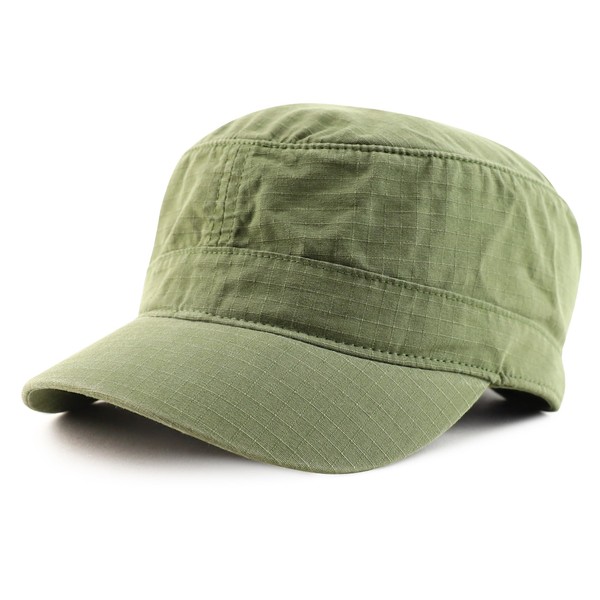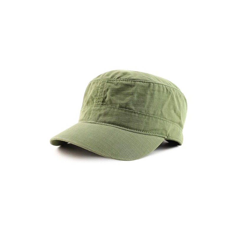 Armycrew Lightweight Cotton Ripstop Fitted Army Style Flat Top Cap - Amry Green -S-M