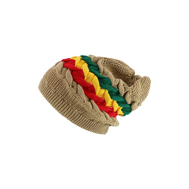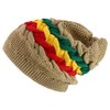 Armycrew RGY Cable Knit Dreadlock Deep Skull 100% Cotton Rasta Beanie - Khaki Rasta