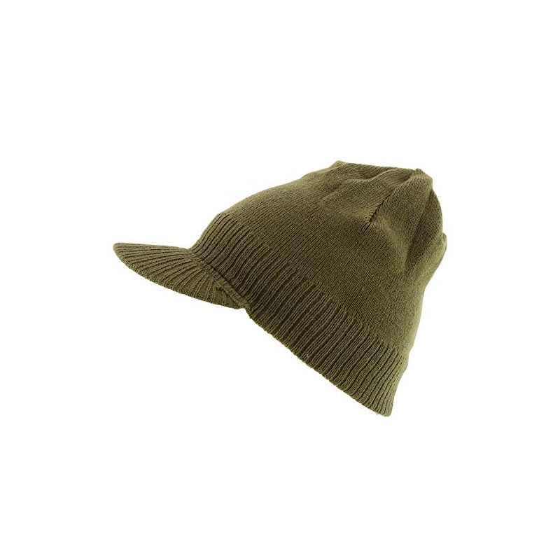 Armycrew RGY Striped Jamaica Rasta Knit Stretchable Beanie Visor Hat - Olive