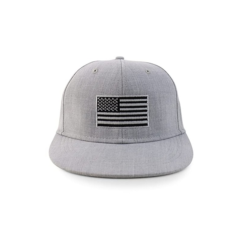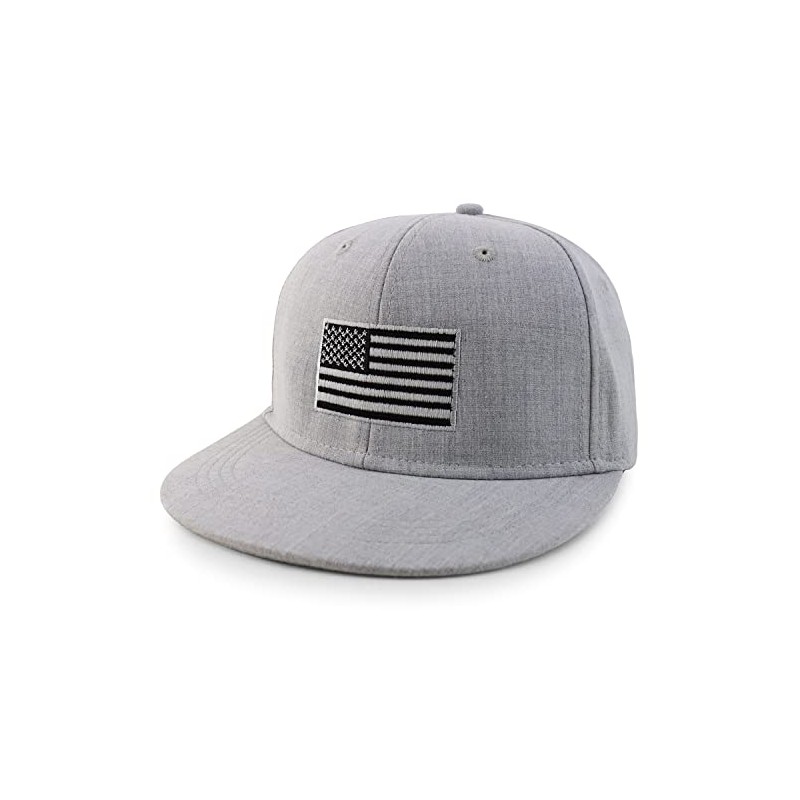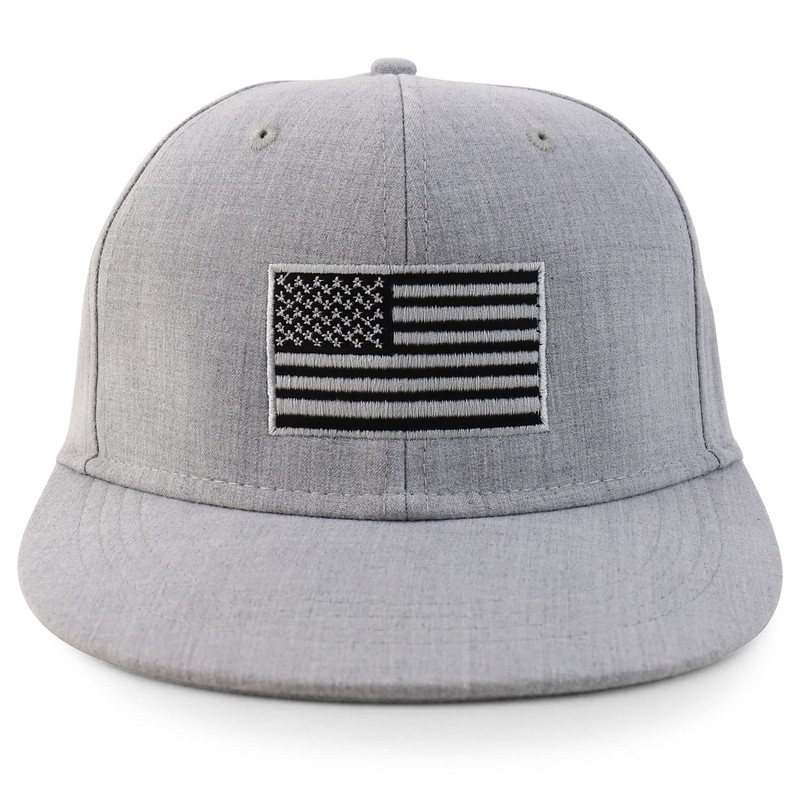Armycrew XXL Grey American Flag Embroidered Plain Back Flatbill Snapback Cap - Heather Grey - 2XL