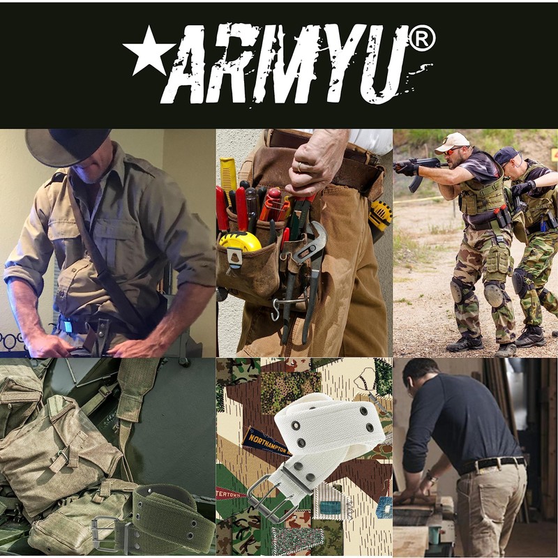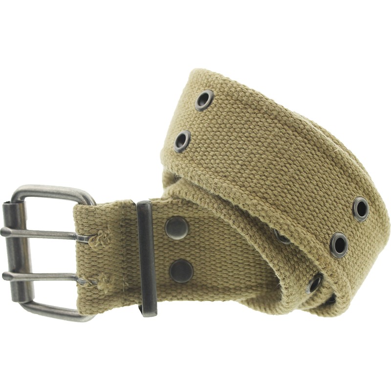 ARMYU Military Double Prong Canvas Belt, Heavy Duty Army Pistol Grommet Two Hole 1.75" (Khaki - Size X-Large)