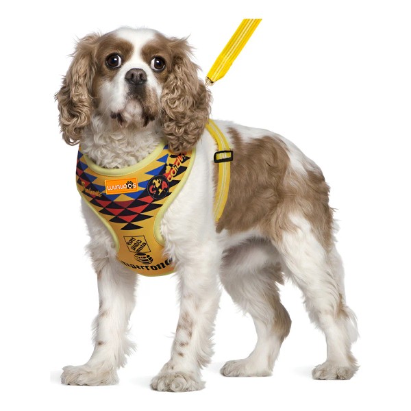 Lo que tienes que saber de este producto Para mascota con 42cm de circunferencia mínima del pecho y 57cm máxima. Fabricado en Poliéster. Es ajustable. Con gancho para correa. Incluye correa.