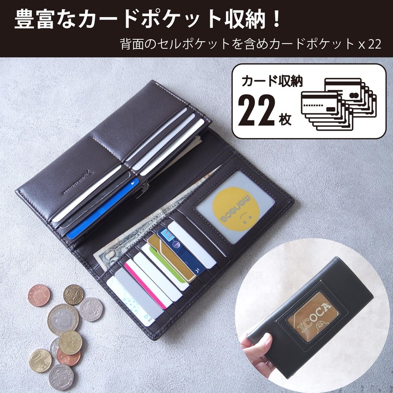 - Multi-functional series: This multi-functional wallet series uses goatskin leather with a beautiful detailed texture. A rich lineup of 4 types, from long wallets with large capacity card storage to bi-fold wallets. Available in 2 colors that are easy to use even for business situations, and brown that goes well with casual styles