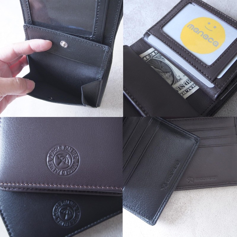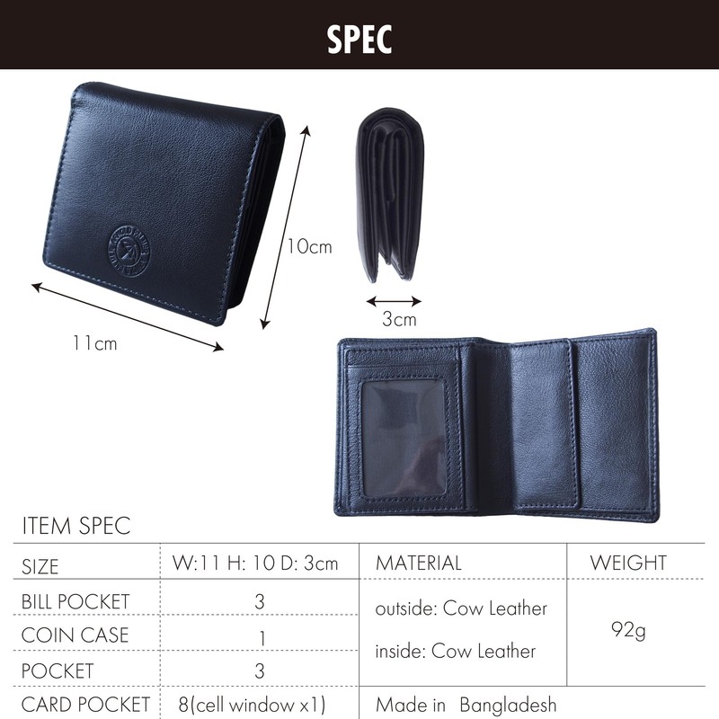 - Material: Goat leather; Size: Width 4.3 inches (110 mm) x Height 3.9 inches (100 mm) x Thickness 0.1 inches (3.0 mm); Specifications: Card pockets x 10, pockets x 3, bill holders x 2, coin purse x 2