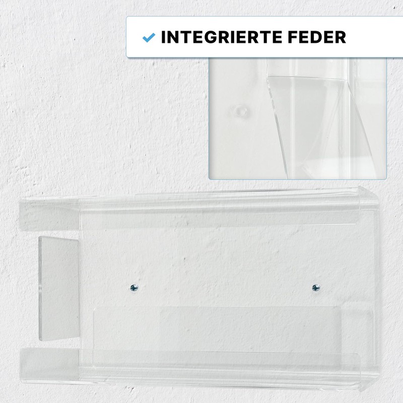 ARNOMED Wall Mount for Disposable Gloves, 1 Disposable Glove Holder with Spring for 1 Box, Wall Holder for Disposable Gloves Made of Nitrile, Latex & Vinyl, Acrylic Glove Dispenser in 24.6 x 10.6 x