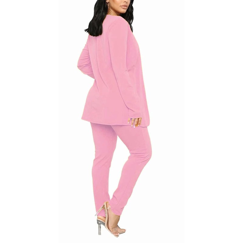 - Ladies casual elegant solid color party slim fitted 2 piece blazer pant set