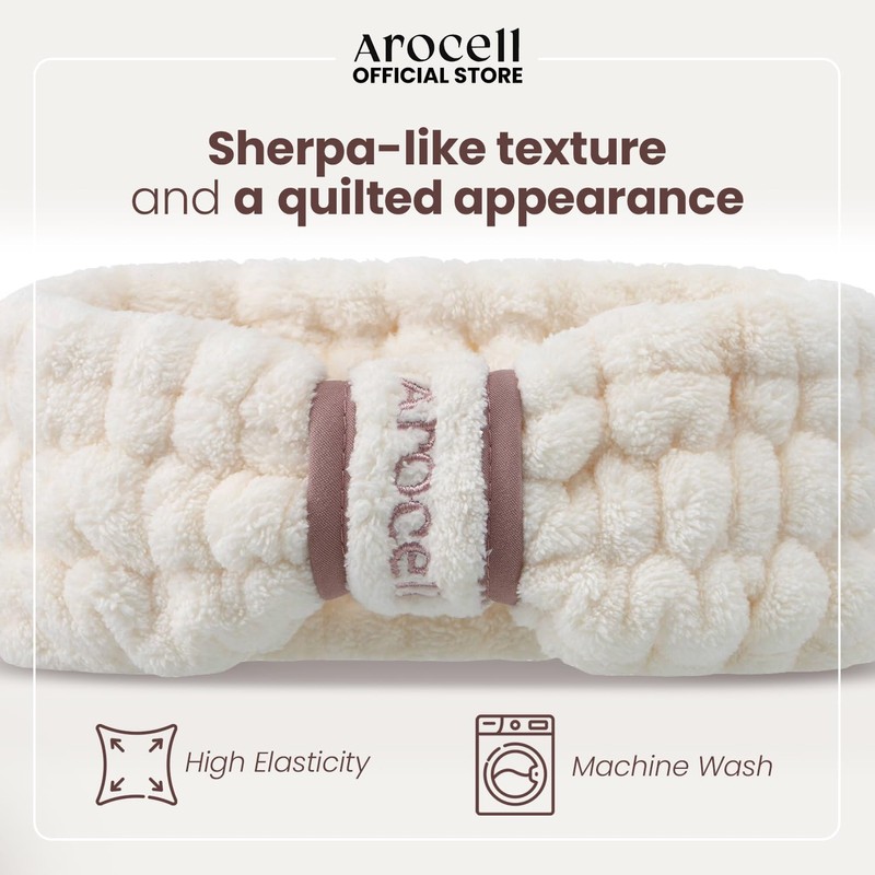• Soft and Luxurious Design - The Arocell Cleansing Headband is crafted from a plush, cream-colored material that offers both comfort and style. Its fluffy texture resembles sherpa or fleece, providing a cozy feel against the skin. The headband features a quilted design that not only enhances its aesthetic appeal but also ensures durability, making it a perfect accessory for your skincare or beauty routine.