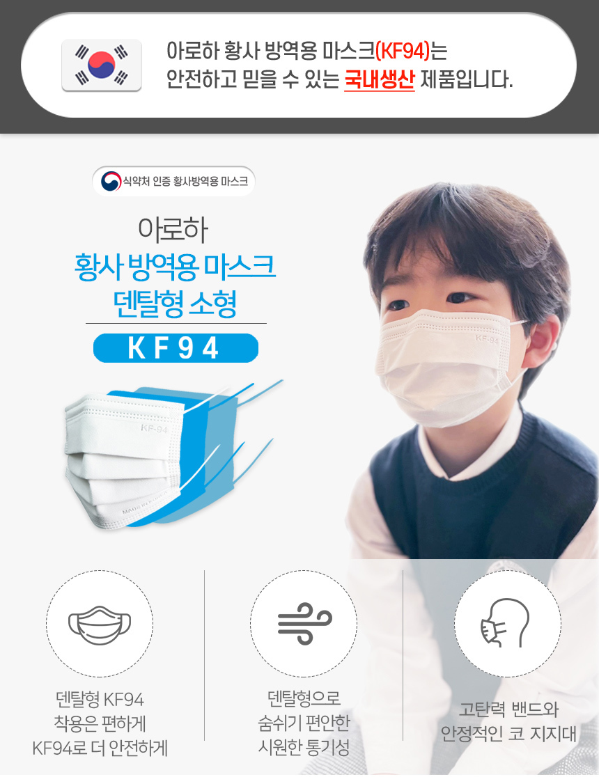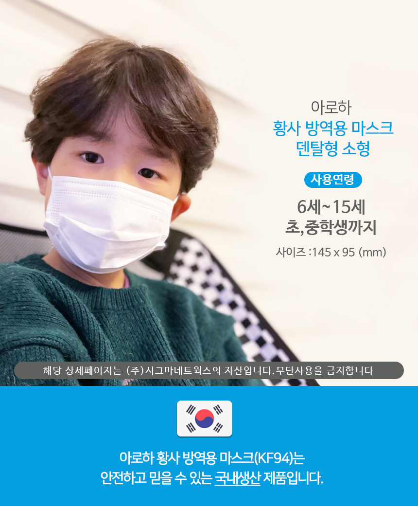 Aroha domestic KF94 dental mask small size 100 pieces / 아로하 국산 KF94 덴탈 마스크 소형 100매입