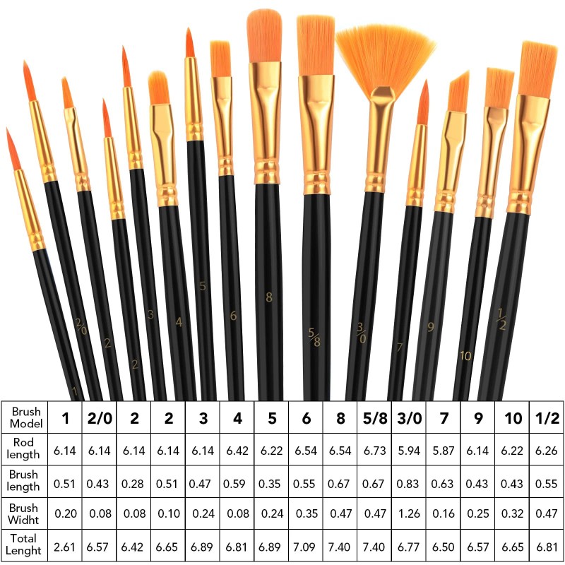 16 PACKS of 15 SIZES PAINT BRUSHES: The 15 sizes versatile paintbrushes set with a variety of shapes make mixing color more easier, perfect for artists, students, teens, kids and painters of all levels.Professional paint brushes for your friends and families that enjoy painting!