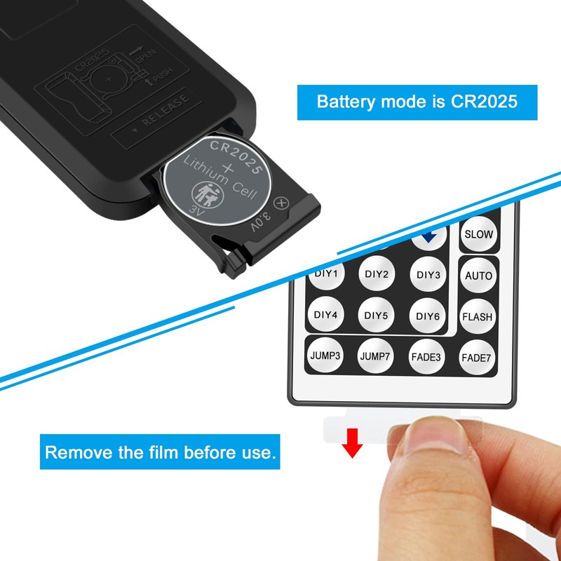 - ▶The led rgb controller contains coin cell batteries. RF remote. If led controller is very hot during use, please give the light strips with a separate power supply, or with the use of amplifiers.