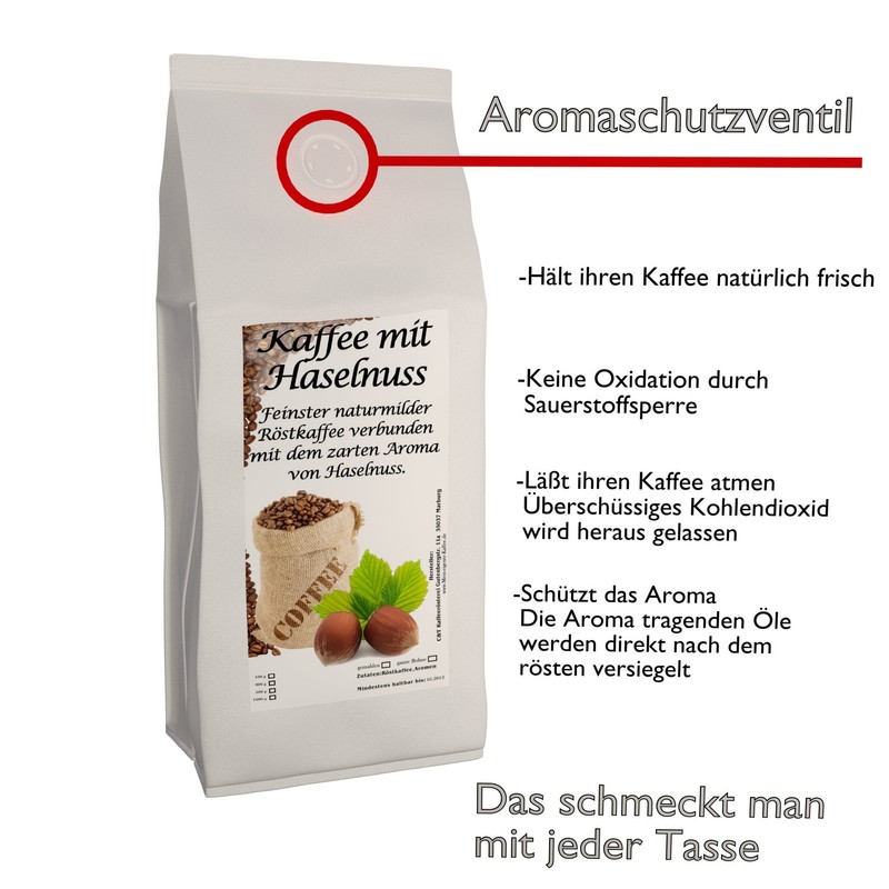 Aroma Coffee - Flavoured Coffee Hazelnut 500 g Whole Beans - Top Coffee - Gentle and Fresh Roasted in Own Roastery