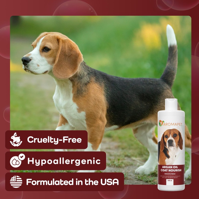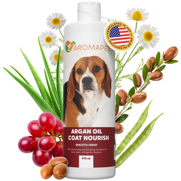 AROMAPET Argan Oil Coat Nourish Dog Shampoo - Deodorizing Dog Shampoo with Chamomile - Great for Beagle, Short Coats & Sensitive Skin - Hypoallergenic Light moisturizing with Gentle cleansers.