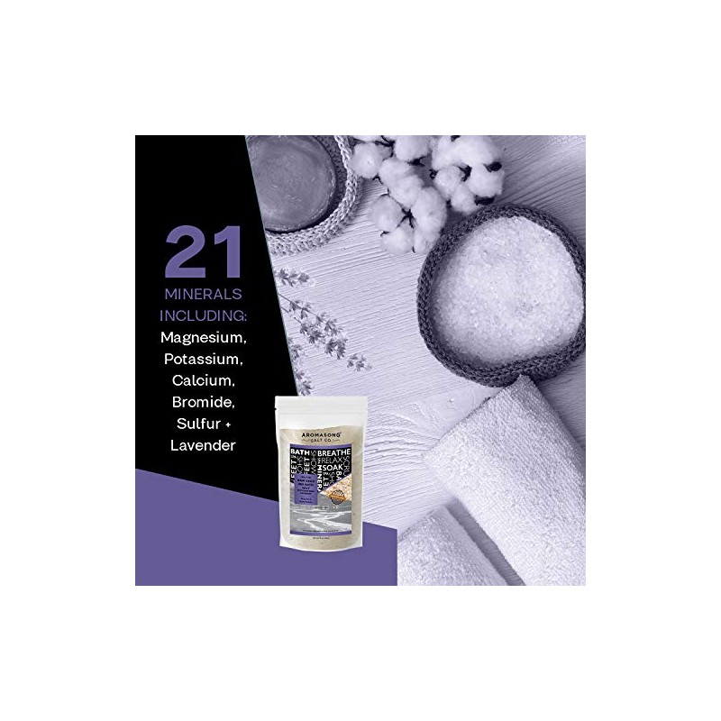 Aromasong Aromasong RAW Dead Sea Salt with 100% Natural Lavender, 2.43 Lb, Not Cleaned, Still Contains All Dead Sea Minerals Including Dead Sea Mud, Fine Medium Grain Large Resealable Bulk Pack.