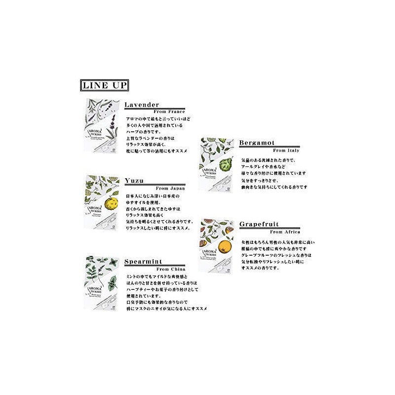 • Each mask sticker is illustrated with an illustration of essential oils that you can enjoy the scent while also making your mask look stylish