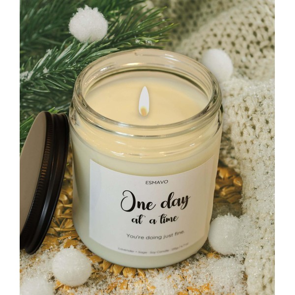 Aromatherapy Candle for Home Scented, Sage & Lavender Scented Soy Candle, One Day at a Time Candle for Birthday, Mothers Day, 4.7oz Relaxing Candles for Women,Encouragement, Get Well, Thinking of You