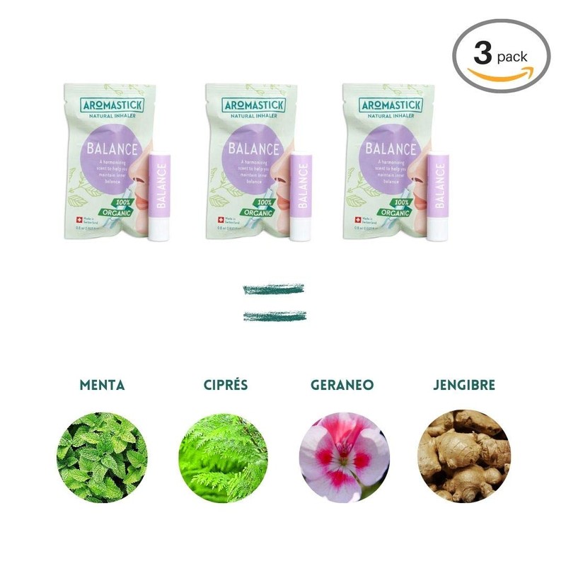 - Aromastick Balance nasal inhalers, a harmonica that helps you hold your inside. Contains pure and 100% organic essential oils: geranium, mint, cypress and ginger.