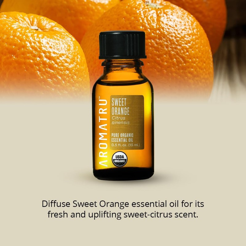 AromaTru USDA Certified Organic Oils - 15ml - 3rd Party Lab Tested - Ethically & Sustainably Sourced (Sweet Orange)