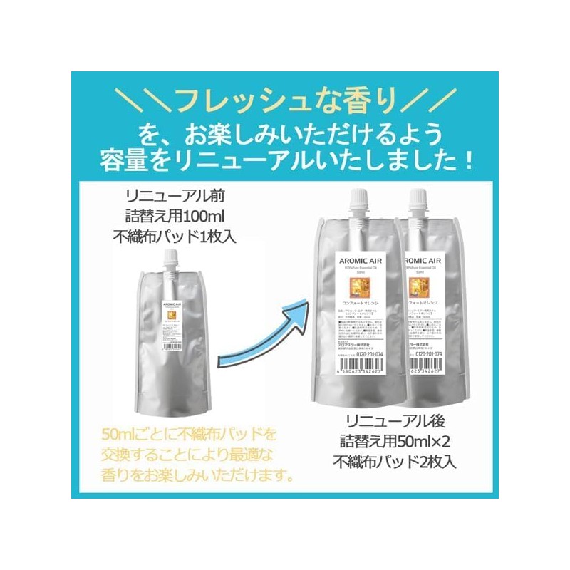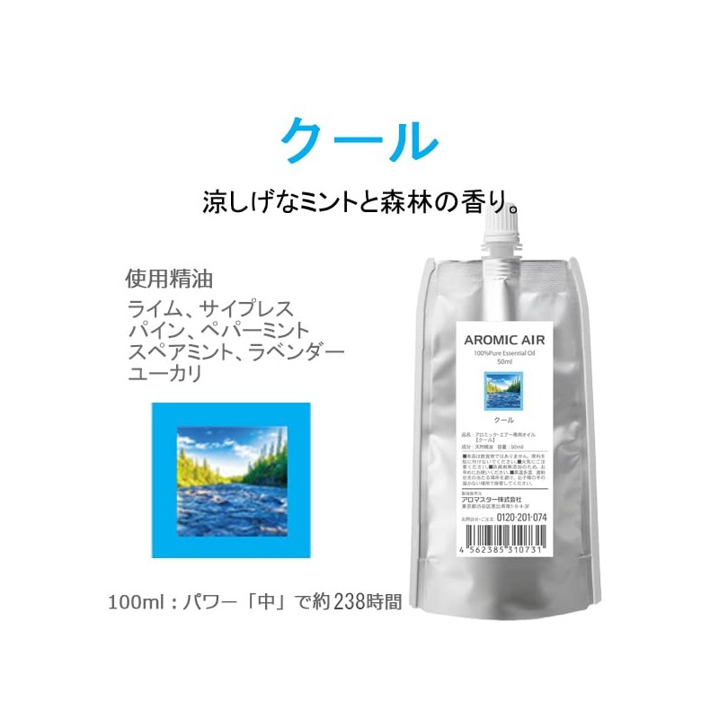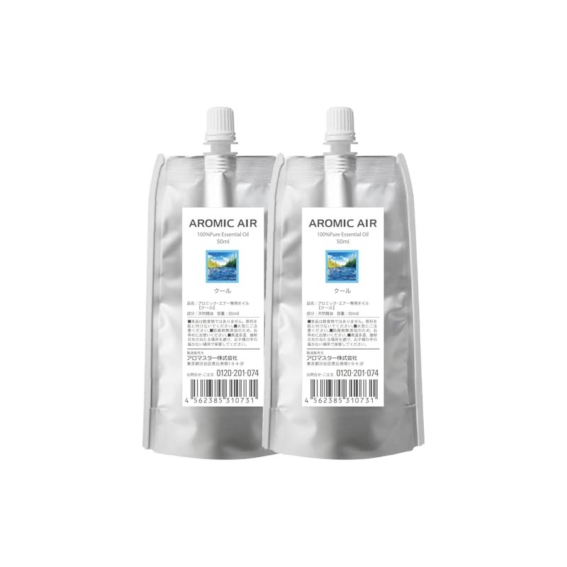 Aromic Air Exclusive Essential Oil (Cool 1.7 fl oz (50 ml) x 2) Non-woven Fabric Replacement Pad Included