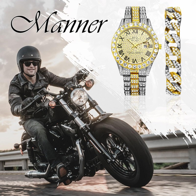 - COMPLETE JEWELRY SET: You will receive 2 pieces of men's jewelry sets, including 1 bracelet and 1 men's diamond watch, allowing you to match freely to show your unique personality.
