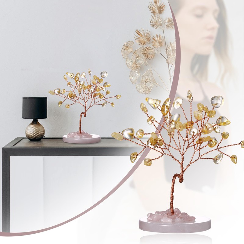 - PREMIUM NATURAL CRYSTALS: Handpicked genuine citrine crystals and premium rose quartz base combine to create this exquisite crystal tree, each stone carefully polished to showcase its natural beauty and energy-enhancing properties.