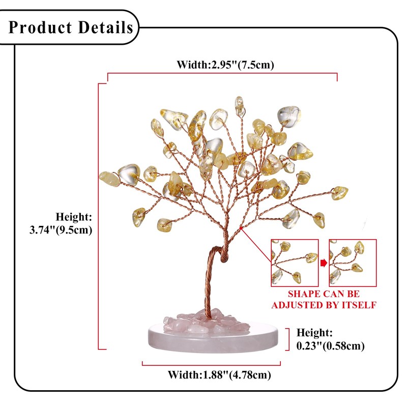 - PERFECT SIZE FOR ANY SPACE: Measuring 3.74" tall and 2.95" wide with a sturdy 1.88" base, this crystal tree is an ideal size for desks, shelves, or meditation spaces, creating an elegant focal point without overwhelming your space.