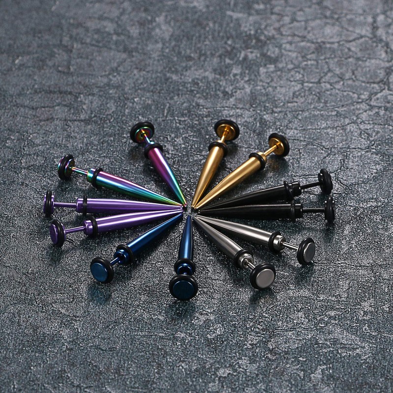 Aroncent Men's Stainless Steel Hip Hop Stud Earrings (6 Colours/Pair) Choice of Sizes 5 mm.