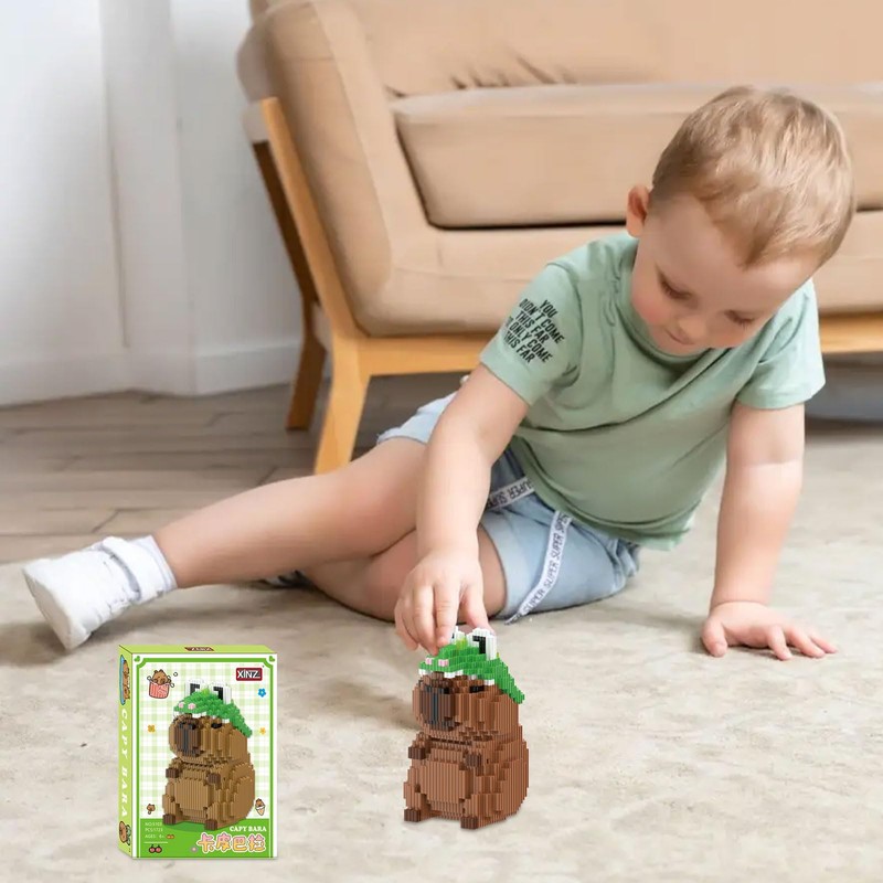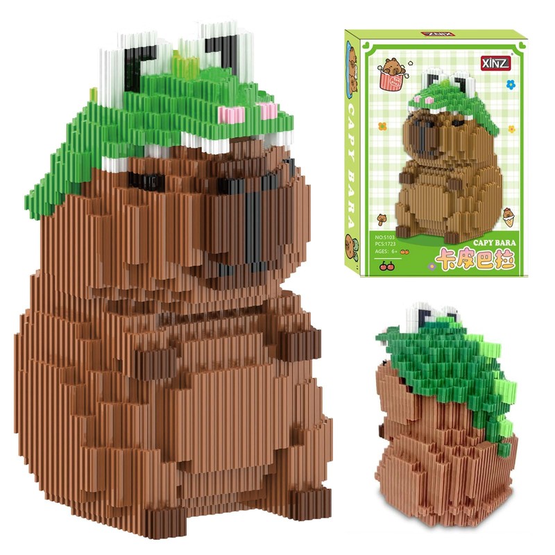 - CAPYBARA BUILDING TOYS You will receive a cute Capybara building kit in a gift box with an instruction manual that contains 7 different colors of building blocks (1723 pieces), which are easy to distinguish and easy to assemble.