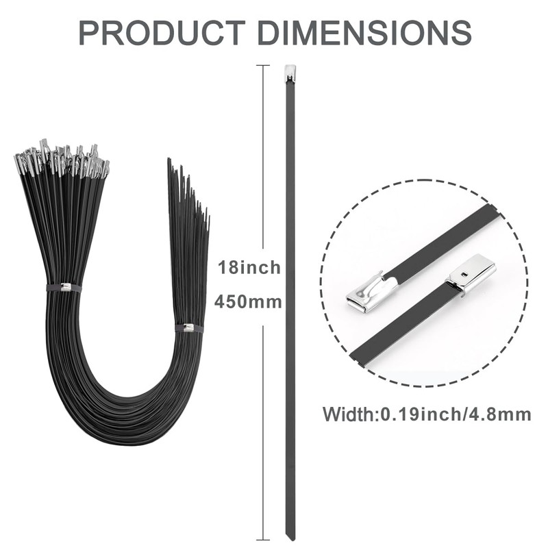 Aroono Metal Zip Ties Stainless Steel 20 inch Black Epoxy Coated Zip Ties, Multi-Purpose Self-Locking Stainless Steel Zip Ties for Vehicles, Pipesas, Fence etc (100 PCS)
