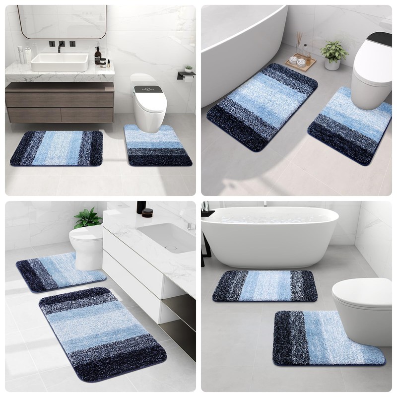 - Multipurpose: Unique gradient color stripe design provides a fashionable accent to any area within the home. Our shower rugs can be widely used in various occasions, such as bathroom, kitchen, living room, meeting room, study room, hallway, bedroom, balcony, bathtub side. It will be a good choice for our family, children, parents