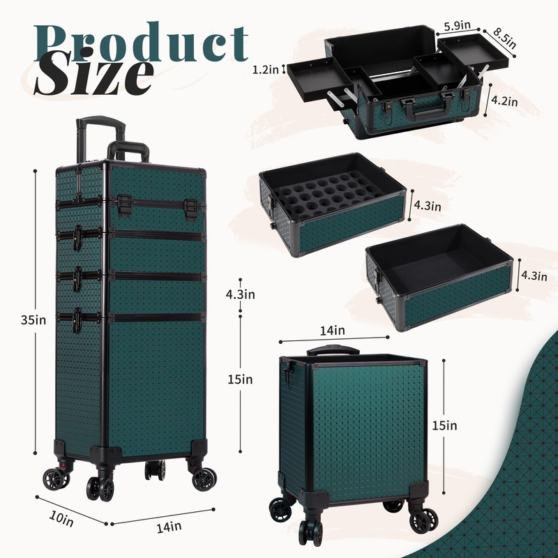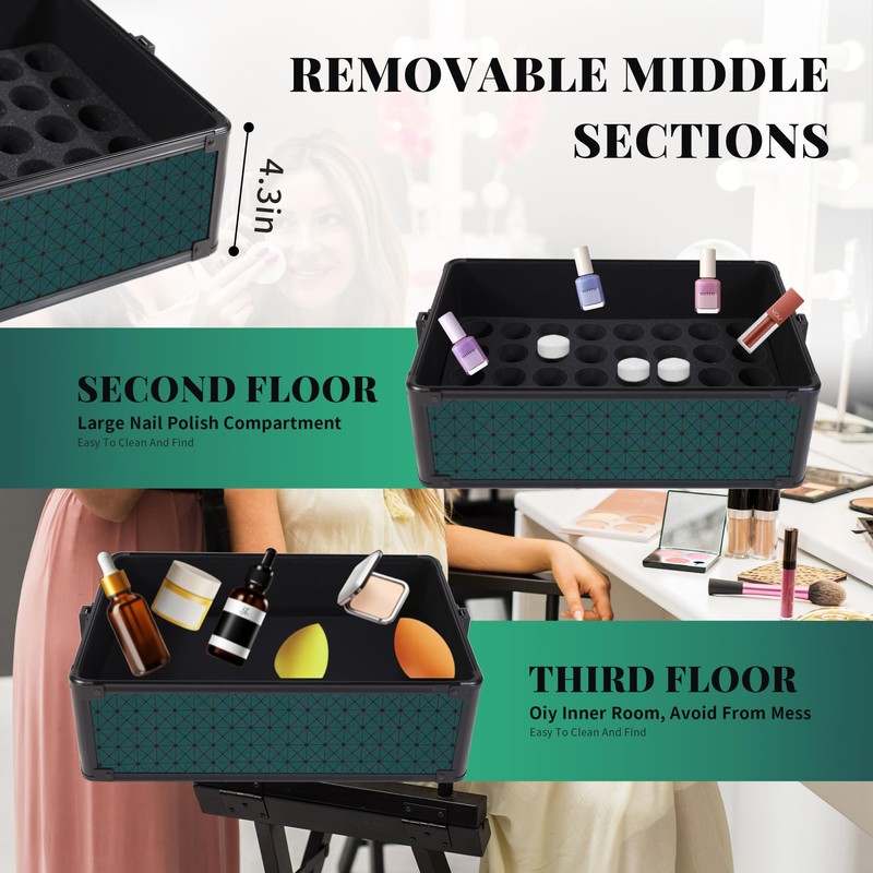 - 【Multi-functional Cosmetic Trolly】4-in-1 makeup case consists of 4 detachable compartments which can be freely combined as your demands. The top compartment can be used as a small makeup carrying case; the middle two drawers can be removed to make this 4-in-1 makeup case into a 3-in-1/2-in-1 case according to your work requirements